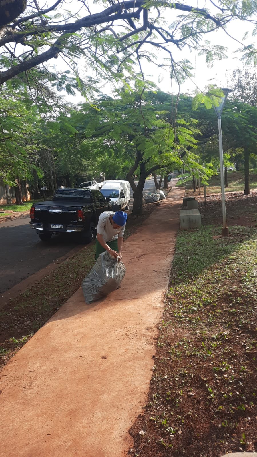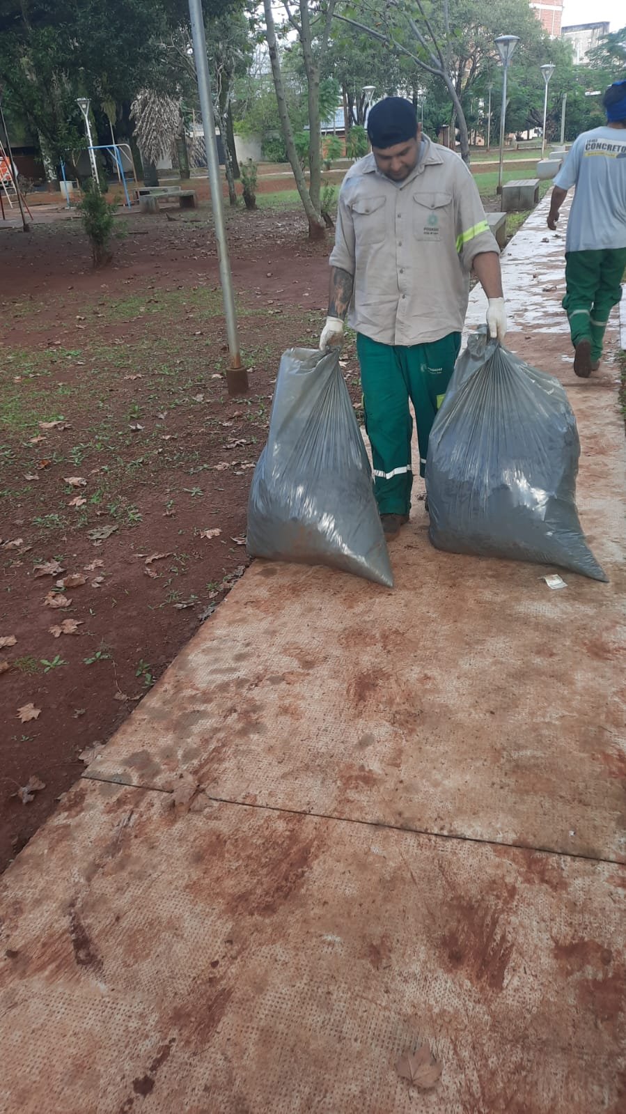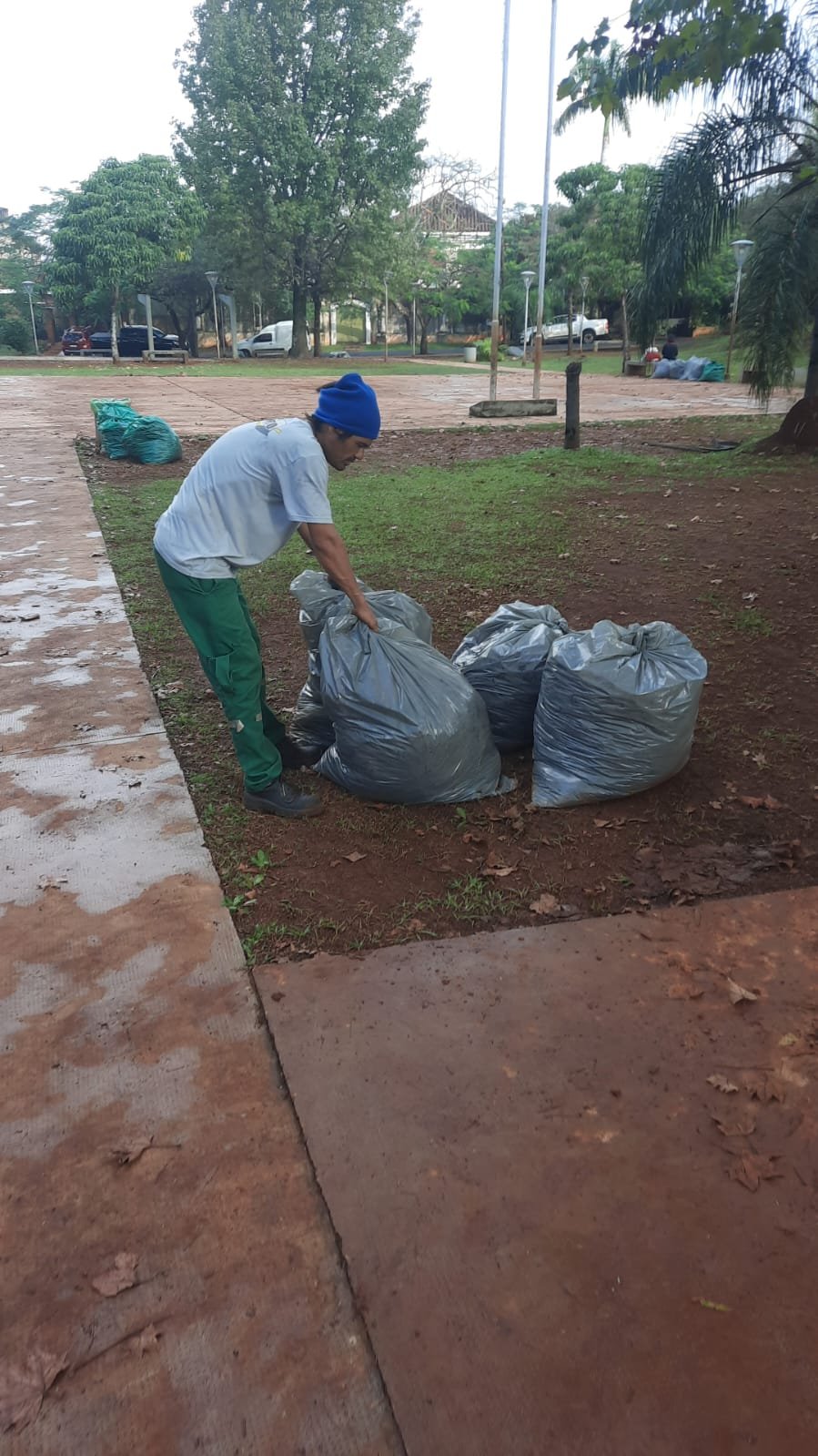 En el transcurso de la tarde personal de la Delegación realizó levantamiento de bolsas en la plaza Madelaire