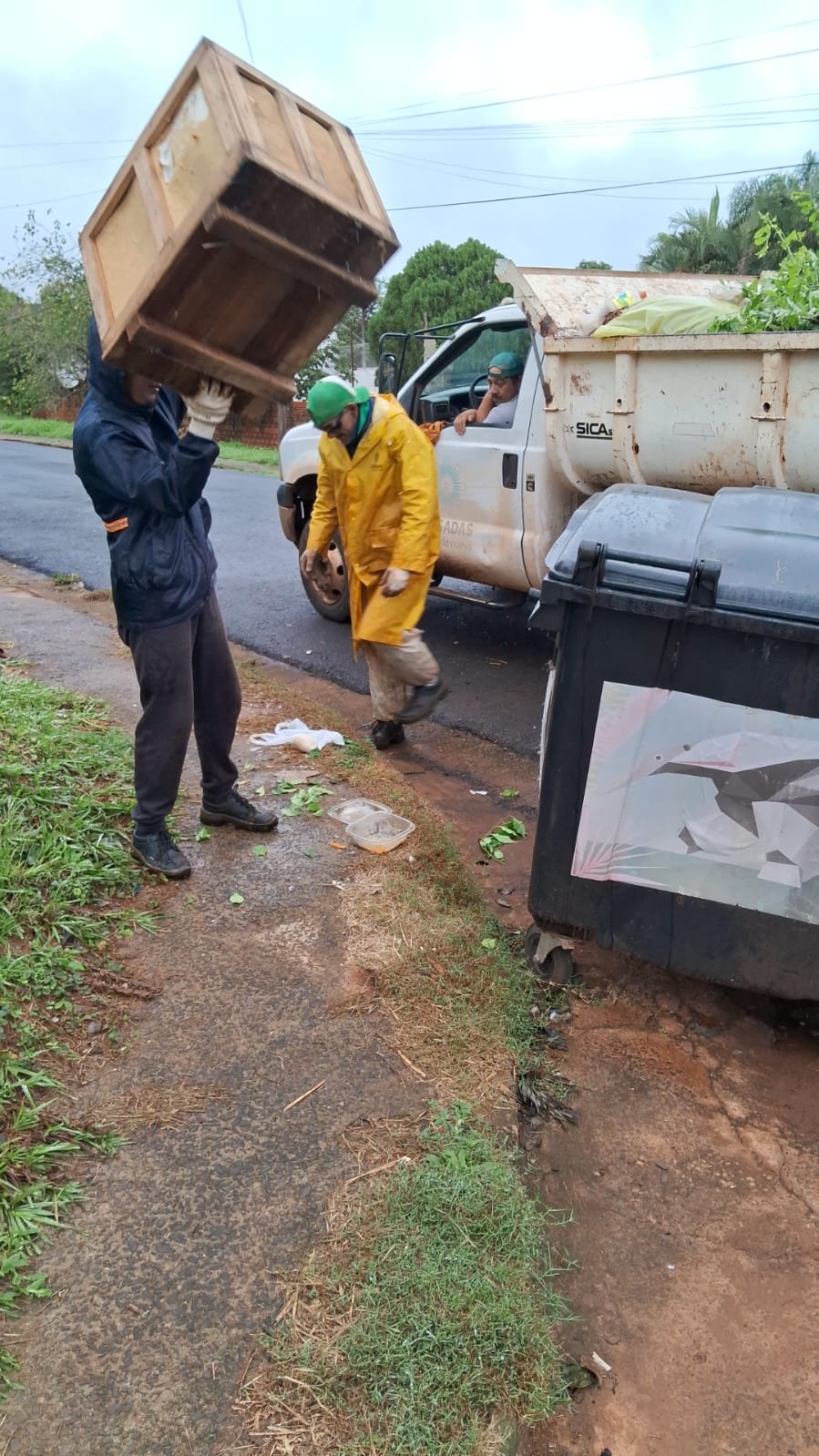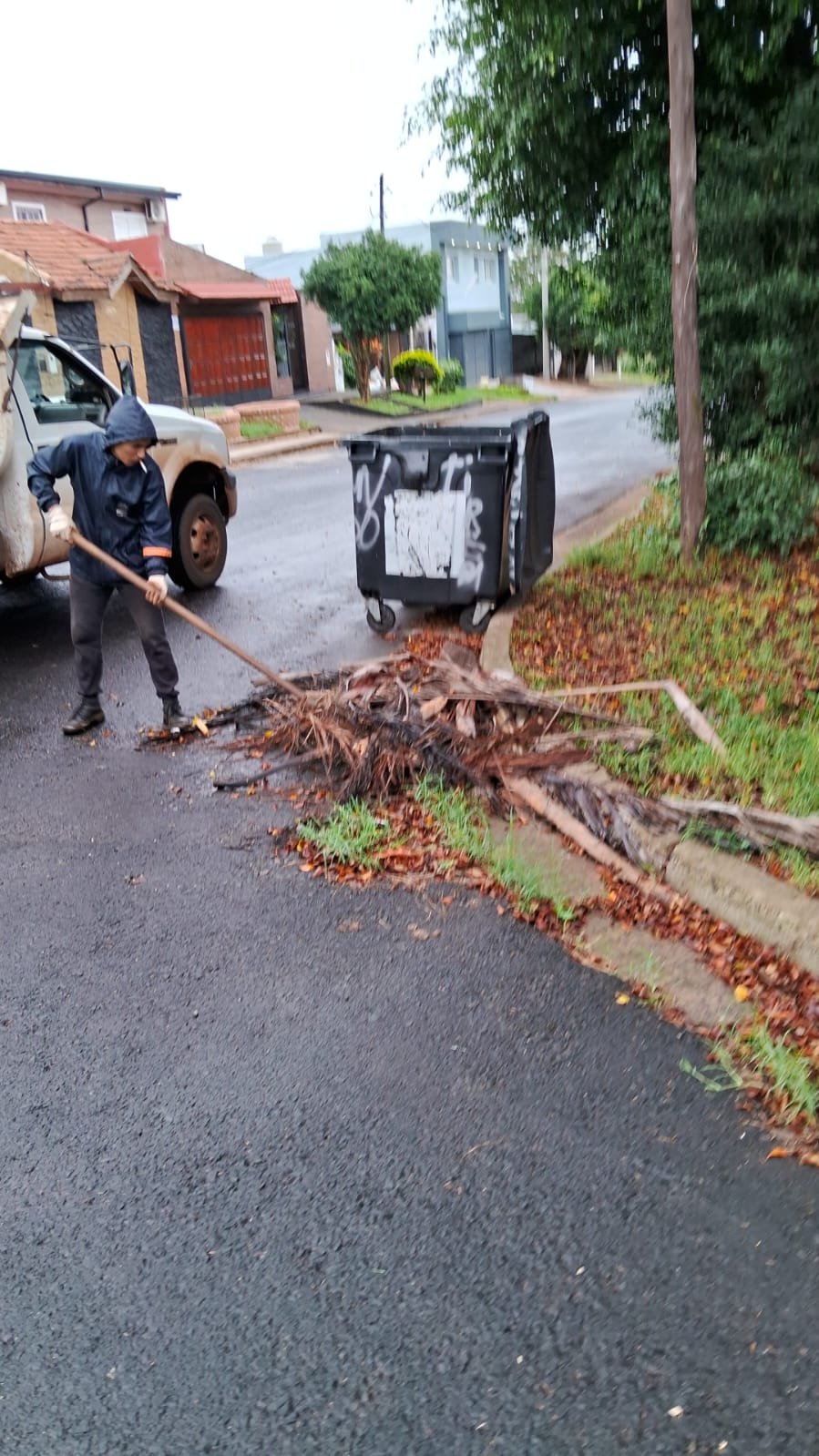 en el transcurso de la mañana el personal de la delegacion realizo tareas de relevamiento y control en la ch 56 Y 57, el camion realizo levantamiento de RAMAS BLANQUEO LIMPIEZA DE SUMIDEROS