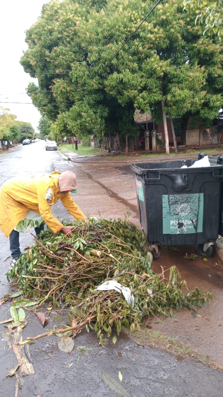turno tarde realizó levantamiento de ramas, bolsas, cacharros y limpieza de sumideros