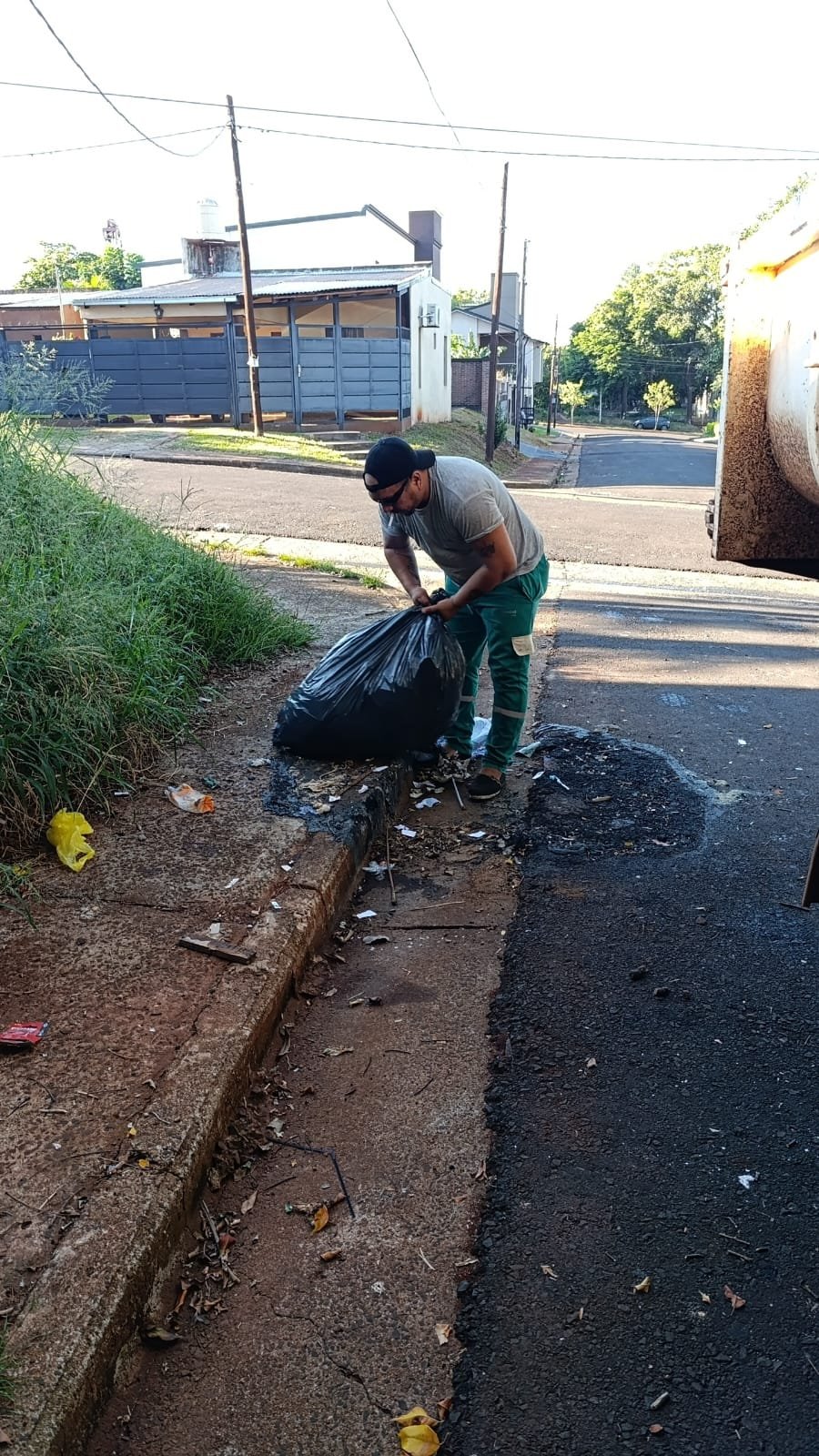 Turno mañana Realizaron lev de bolsas, cacharros y blanqueo de cordón cuneta