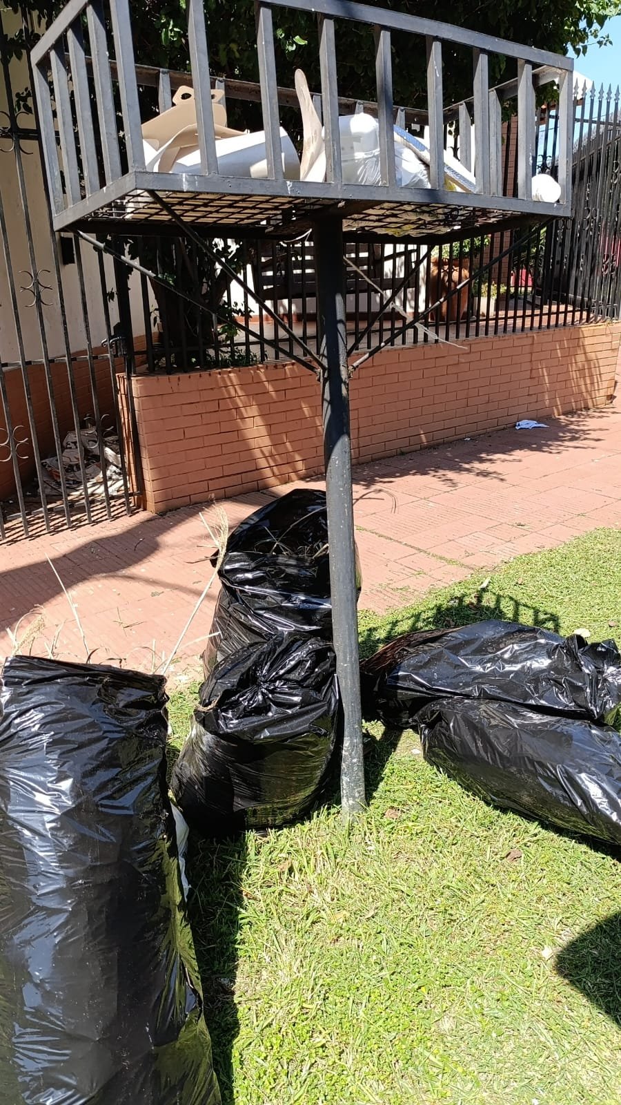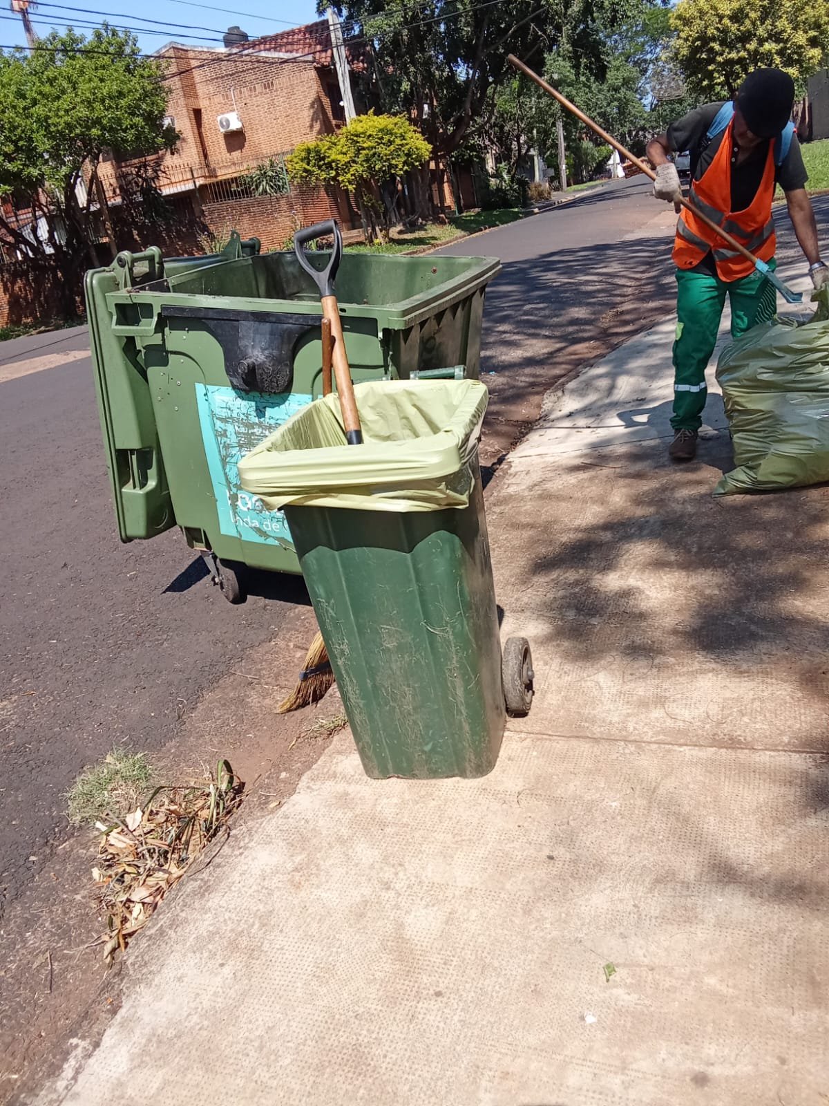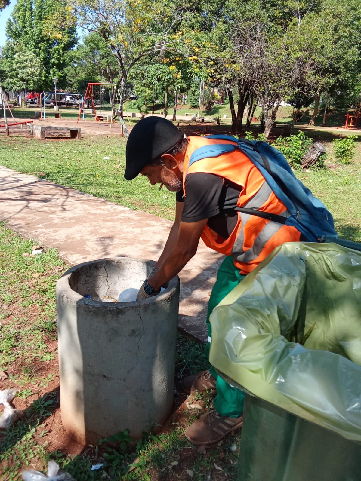 TURNO MAÑANA REALIZARON LEV DE BOLSAS, BLANQUEO Y LIM DE CESTOS DE LA PLAZA MADELAIRE