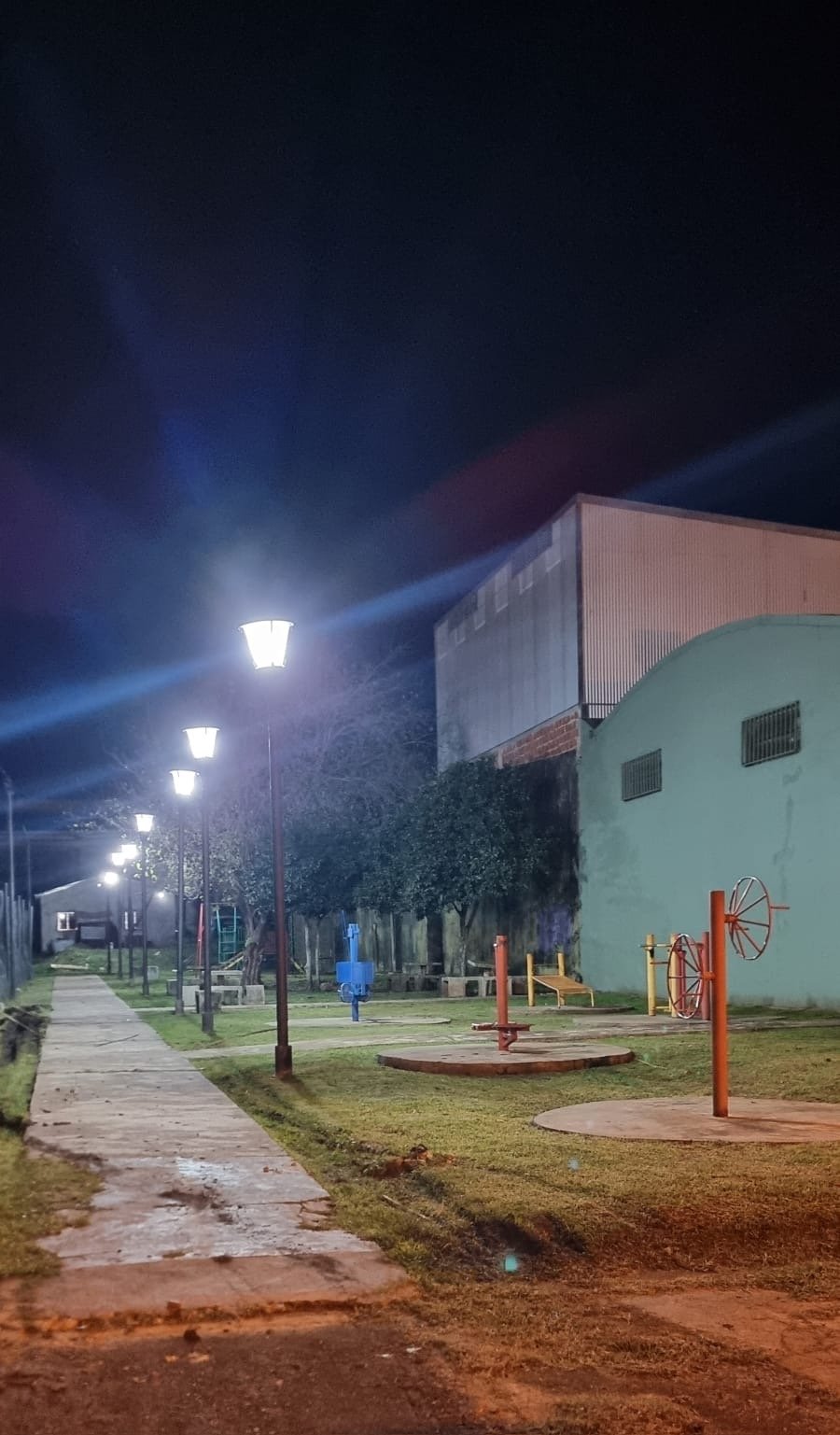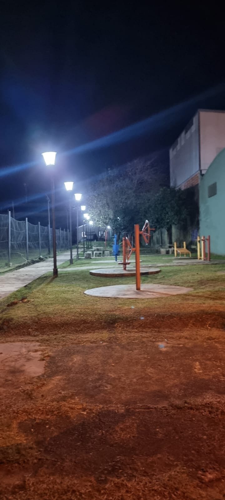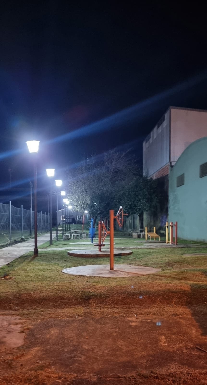 Reposición y colocación de 9 luminarias Led. En plaza saludable.
