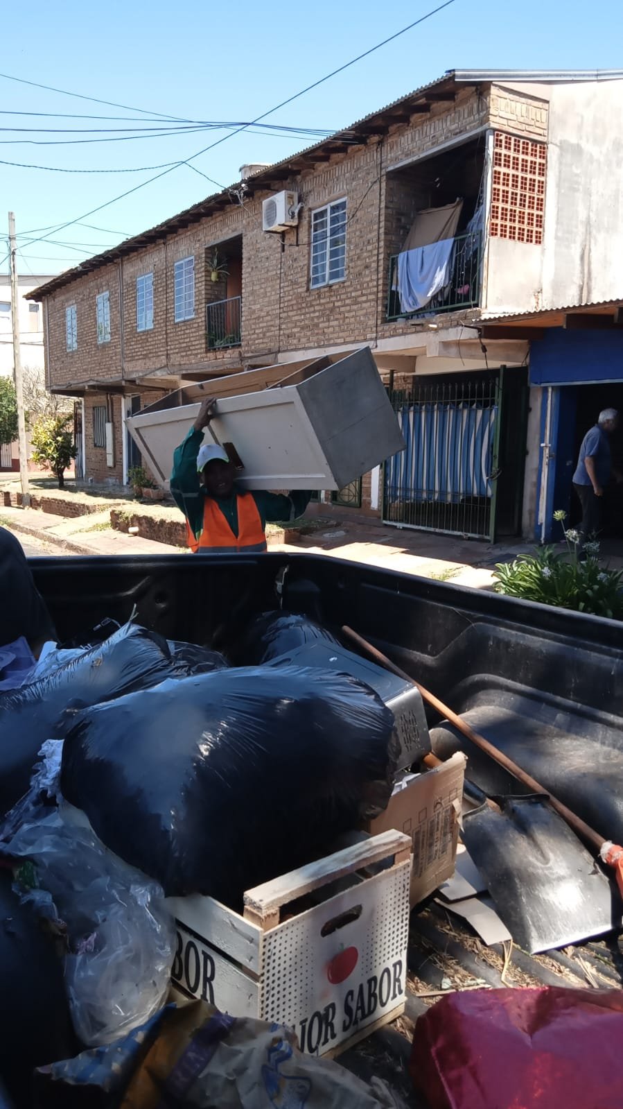 TURNO TARDE REALIZO LA RECOLECCIÓN DE CACHARRO, RAMAS, BOLSAS, DESCONGESTION DE CONTENEDORES Y BLANQUEO AL REDEDOR.