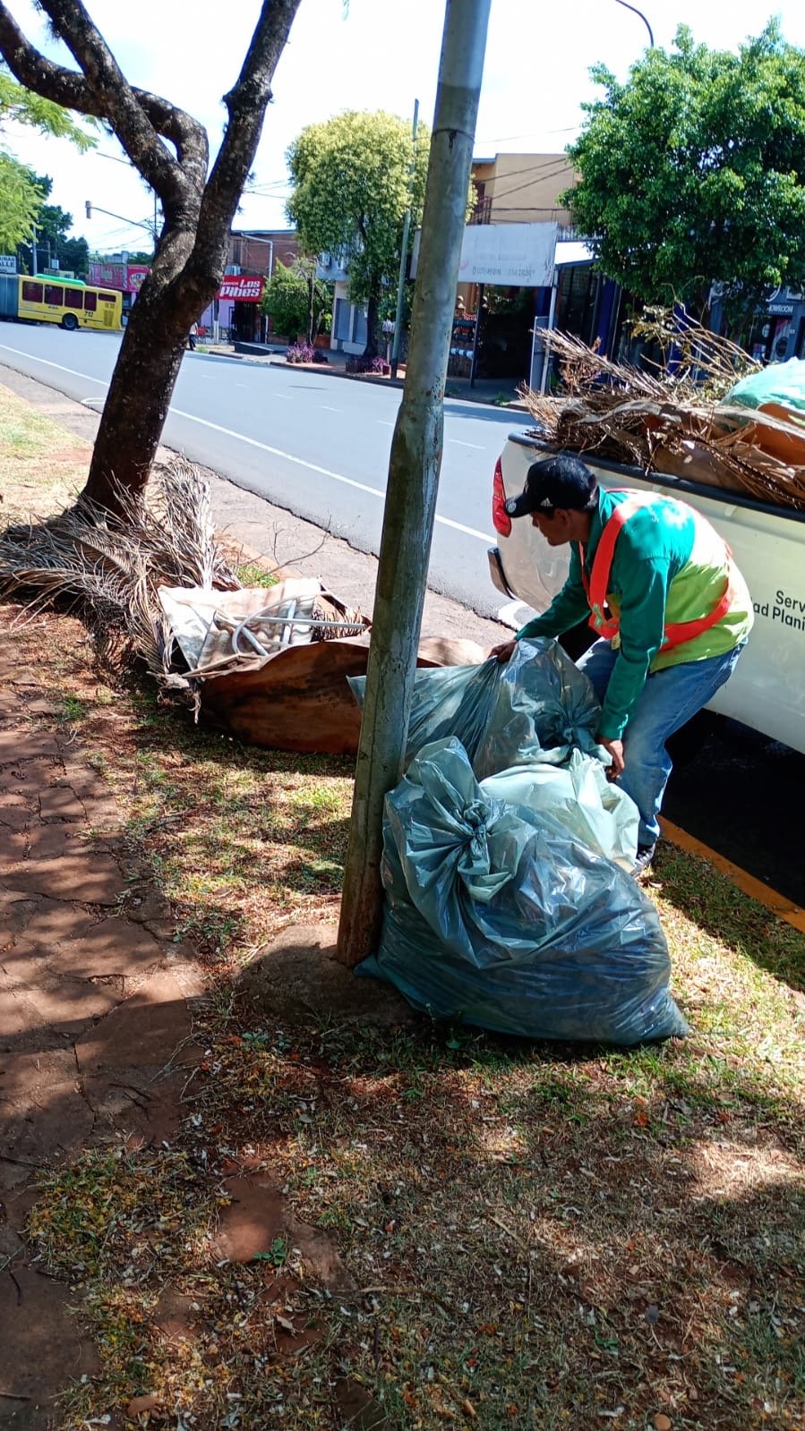 EN EL TURNO DE LA TARDE SE REALIZÓ: - DESCONGESTIÓN DE CONTENEDORES - RECOLECCIÓN DE RAMAS Y BOLSAS - BLANQUEO DE VEREDAS - LIMPIEZA DE MINI BASURAL